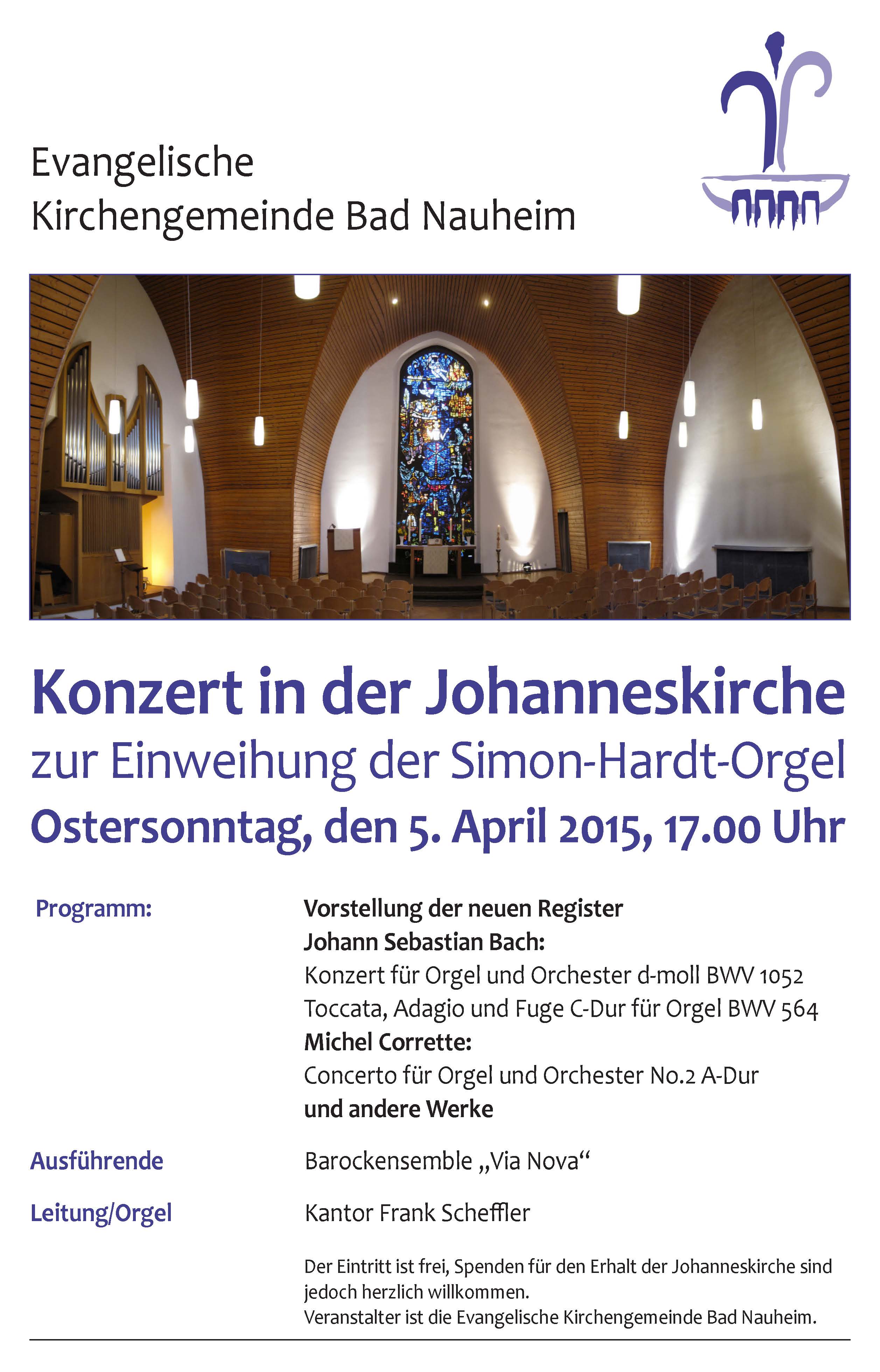 Unsere Kirchengemeinde freut sich, dass nach langer Umbau- und Reparaturzeit die Orgel der Johanneskirche an Ostern 2015 erstmals in ihrer fertigen Klanggestalt erklingen konnte. Mit einem festlichen Konzert an Ostersonntag wurde sie den vielen Spenderinnen und Spendern sowie vielen Interessierten mit ihrem neuen Klang vorgestellt.