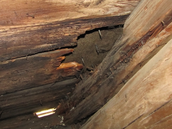 Wie im Turm sind vor allem der Austausch einiger maroder Balken im Dachstuhl und die Reparatur undichter Stellen im Dach geplant. Dazu gehört auch ein neuer Anstrich des Kirchenschiffs und des restlichen Turms. Das Schieferdach ist zum Glück noch in Ordnung! (Klick auf das Bild: Film mit Details.)