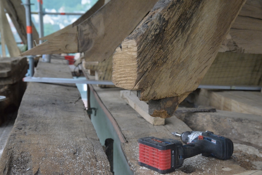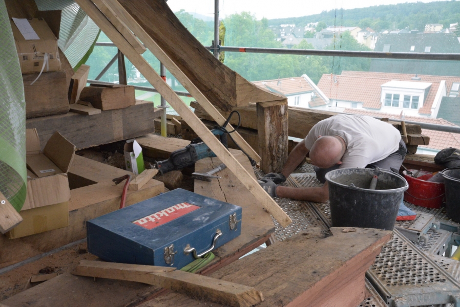 Die Turmsanierung unseres Gemeindezentrums erforderte einen Aufwand von knapp 300.000 Euro. Zwei Drittel davon hat die Evangelische Kirche in Hessen und Nassau (EKHN) aus dem Gesamtbudget für die Kirchenerhaltung getragen, das aus der Kirchensteuer bestritten wird. Auf uns als Gemeinde entfiel ein Betrag von etwa 100.000 Euro.