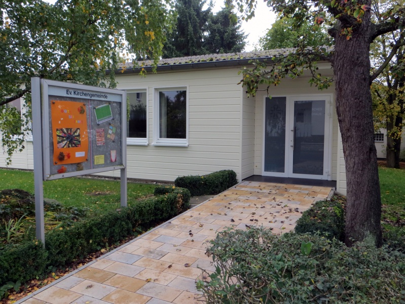 Das Gelände des neuen Pfarrhauses in der Wilhelm-Leuschner-Straße/im Lärchenweg bot genügend Platz, das rechteckige, einstöckige Holzhaus aufzunehmen. Die erforderliche Baugenehmigung wurde erst einmal nur vorläufig erteilt: Der Holzbau war leicht entflammbar und die vorhandenen Sicherheitsvorkehrungen entsprachen nicht vollständig den Anforderungen. Erst durch den Einbau einer Fluchttür und einer Notbeleuchtung konnten die hohen Anforderungen der Baubehörde erfüllt werden.